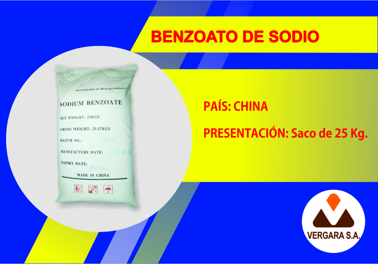 El benzoato de sodio, es una sal del ácido benzoico, blanca, cristalina y gelatinosa o granulada, de fórmula C6H5COONa. Es soluble en agua y ligeramente soluble en alcohol. La sal es antiséptica y se usa generalmente para conservar los alimentos.